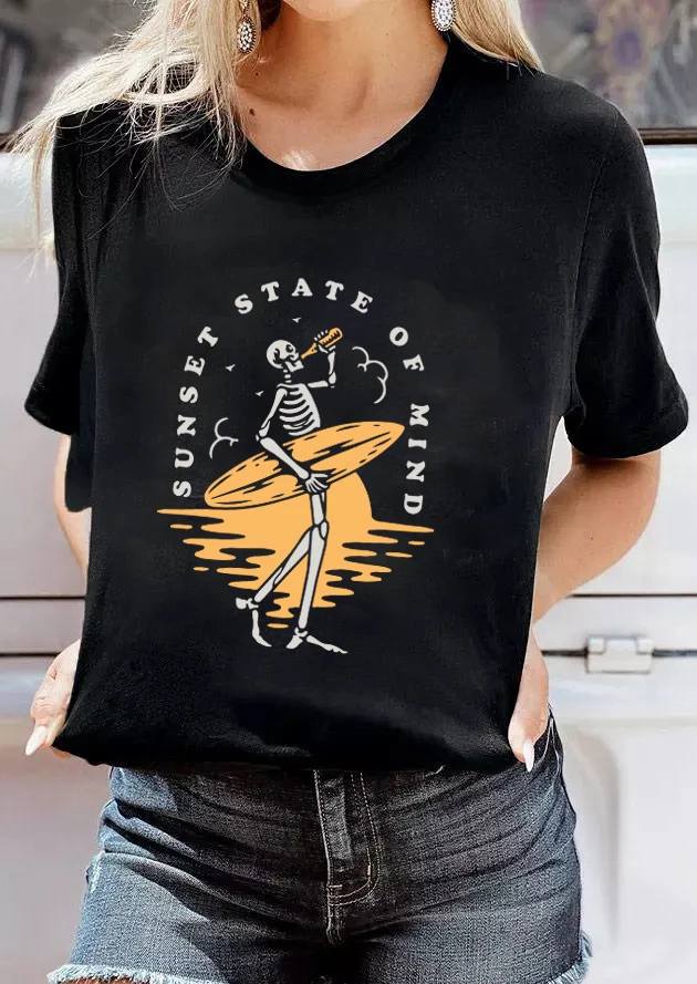 Sunset State Of Mind T Shirt Funny Drink Skeleton Graphic Shirt Surf Board Tee Women Fashion Summer Street Style Vintage Tee Top T Shirts Aliexpress