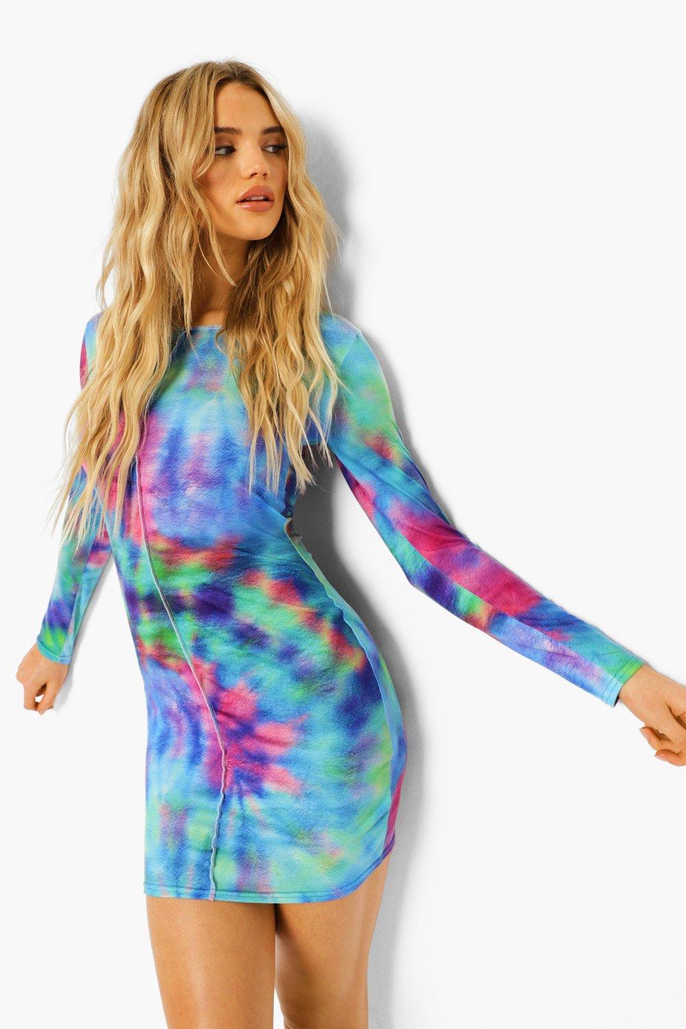 Women S Tie Dye Long Sleeve Mini Dress Boohoo Uk
